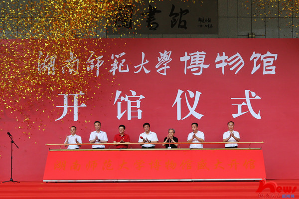 (记者 蔡颂 马铁泉)6月28日下午,我校在图书馆广场举行“湖南师范大学博物馆”开馆仪式。湖南省政协副主席李民、湖南省文物局常务副局长江文辉、岳麓区委书记周凡、岳麓区政府代理区长蔡锋、我校党委书记蒋洪新等出席活动,我校校长刘起军主持仪式。