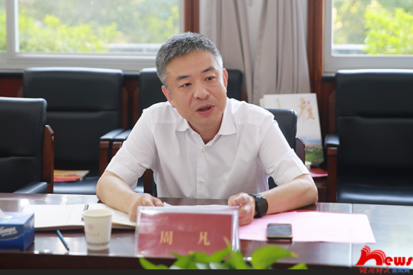 周凡向学校全体师生员工致以中秋佳节的节日祝福,对学校所取得的成绩致以祝贺。他说,高水平大学是一个地区不可多得的财富。湖南师大历史悠久、底蕴深厚,为岳麓区和大科城的经济社会发展提供了强有力的支撑。岳麓区和大科城将为学校建设发展进一步做好服务,在后湖艺术园建设、二里半东广场建设以及人才成长环境营造上提供支持和后勤保障,为学校双一流建设贡献岳麓区力量。他同时介绍了岳麓区第六次党代会相关情况,希望我校继续支持岳麓区和大科城的发展,地校携手,共同推进创新名城建设,共同擦亮优质教育的品牌和名片,共同抓好常态化疫情防控。