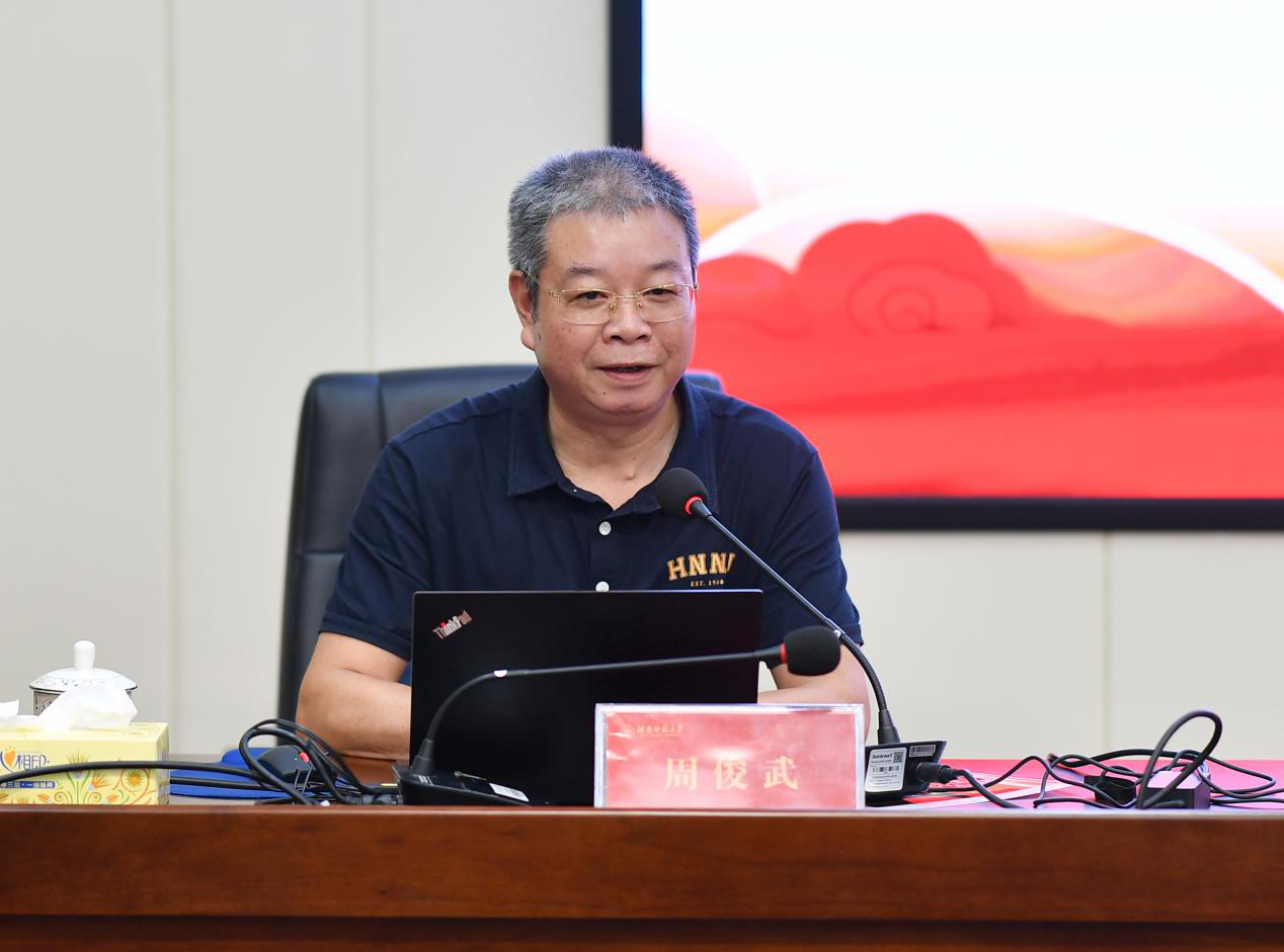 (供稿 党委统战部)7月5日至6日,我校2022年党外知识分子培训班在中和楼报告厅举行。省委统战部副部长、省侨办主任符俊根,省委教育工委党校常务副校长刘国华,我校党委书记蒋洪新、党委副书记周俊武授课。培训班开班式由校党委委员、统战部部长杨念主持。