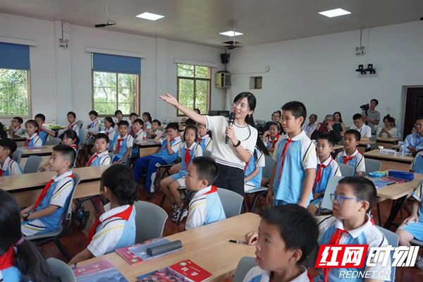 湖南师范大学附属小学的课堂上,老师正在和同学们互动。