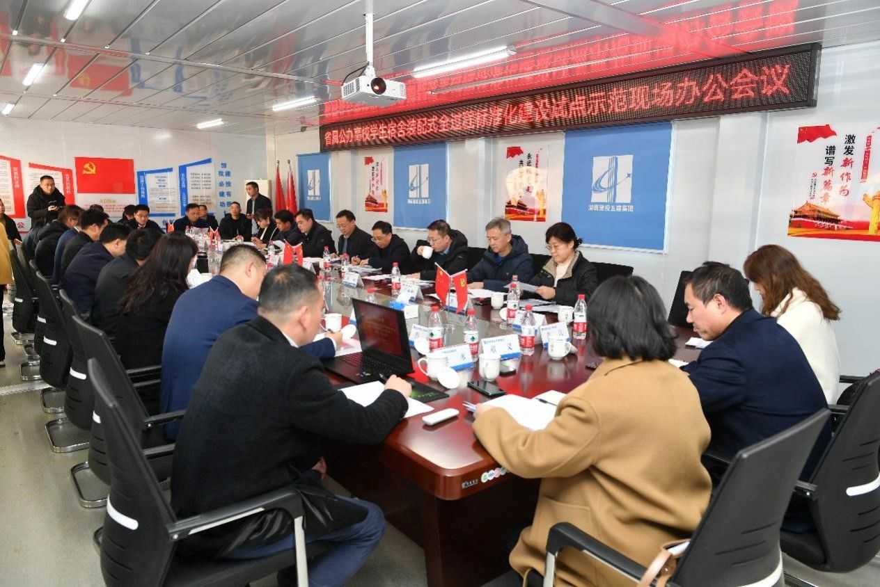 (供稿 基建处)12月28日下午,省属公办高校学生宿舍装配式全过程标准化建设试点示范现场办公会议在我校桃花坪校区召开,省住房和城乡建设厅党组成员、副厅长易小林,副校长刘怀德出席会议。会议由基建处处长陈文雄主持。