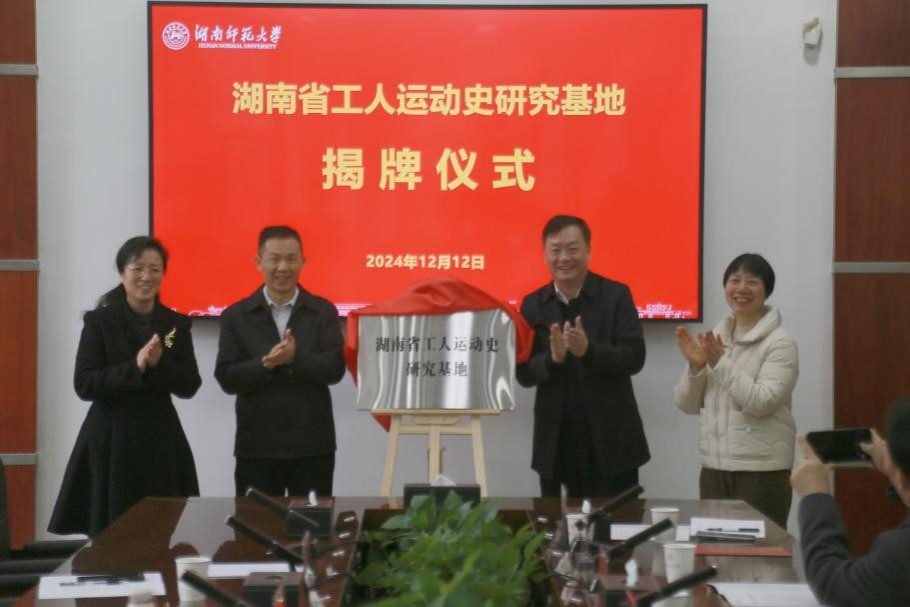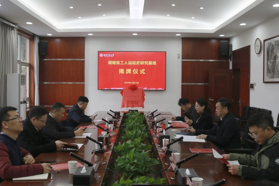(通讯员 谢俊 记者 张婧茹 干惟晟)在即将迎来中华全国总工会和湖南总工会成立百年之际,湖南省工人运动史研究基地正式落户我校。12月12日上午,研究基地揭牌仪式和专家座谈会在我校举行。省总工会副主席(挂职)黄快林、省教育工会副主席邓曼、我校副校长王辉出席座谈会。校工会常务副主席余英主持活动。