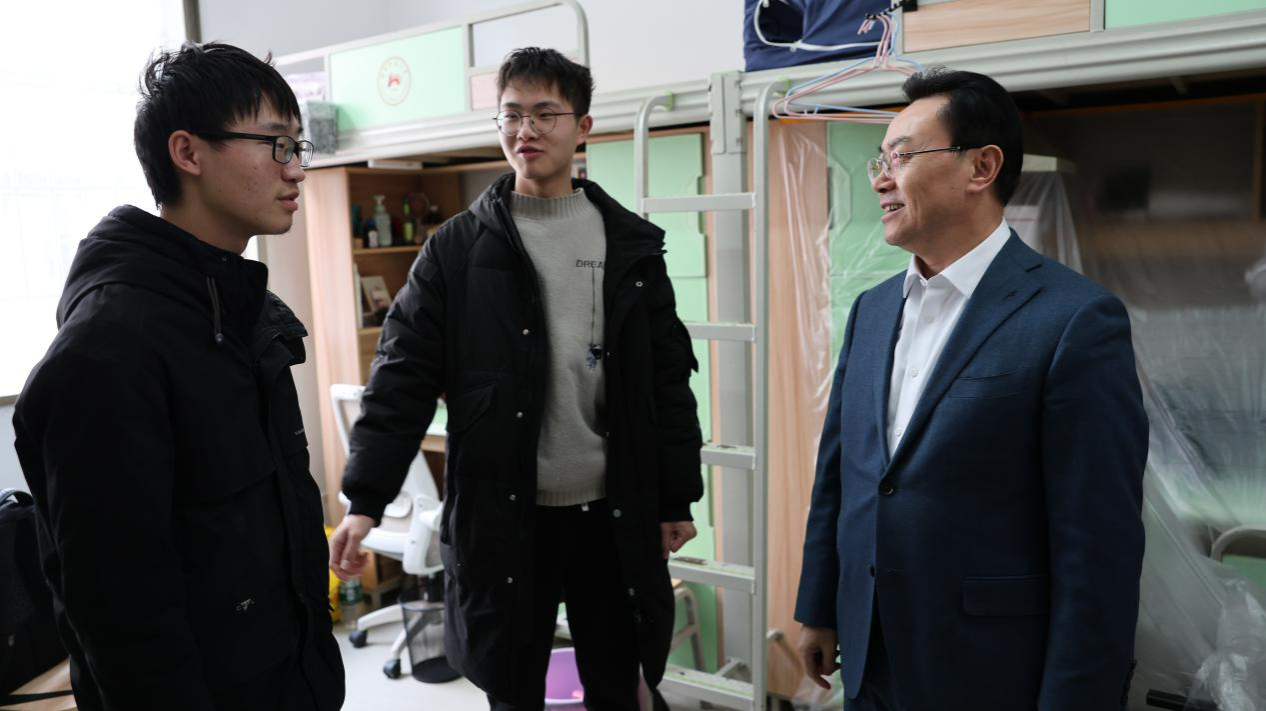在二里半学生公寓,他看望慰问了假期留校学生。他叮嘱同学们要提高对宿舍安全的认识,加强自我管理和自我监督,坚持劳逸结合,高效利用假期时间提升自我。