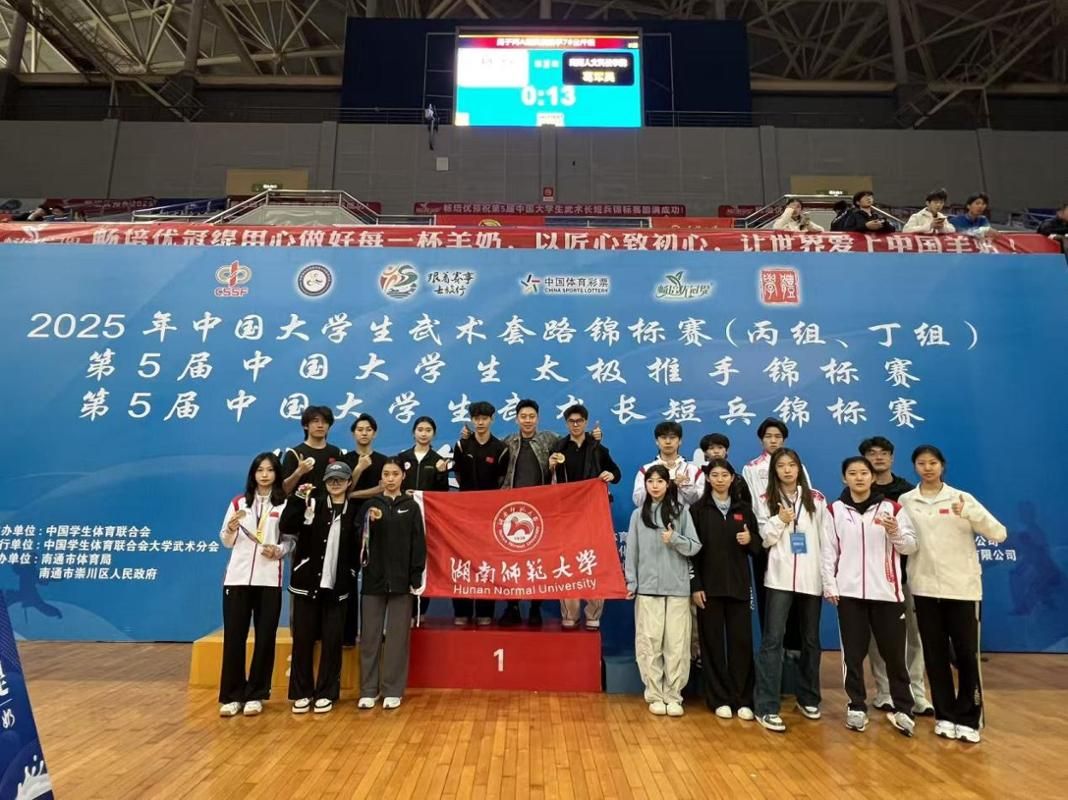 (通讯员 李永峰)近日,全国大学生武术领域首次“三赛合一”的高规格盛会——2025年中国大学生武术套路锦标赛(丙组、丁组)、第5届中国大学生武术长短兵锦标赛、第5届中国大学生太极推手锦标赛在江苏南通同期举办。我校武术代表队共派18名健儿征战,经过5天激烈角逐,以荣获5枚金牌、11枚银牌、5枚铜牌的佳绩收官。