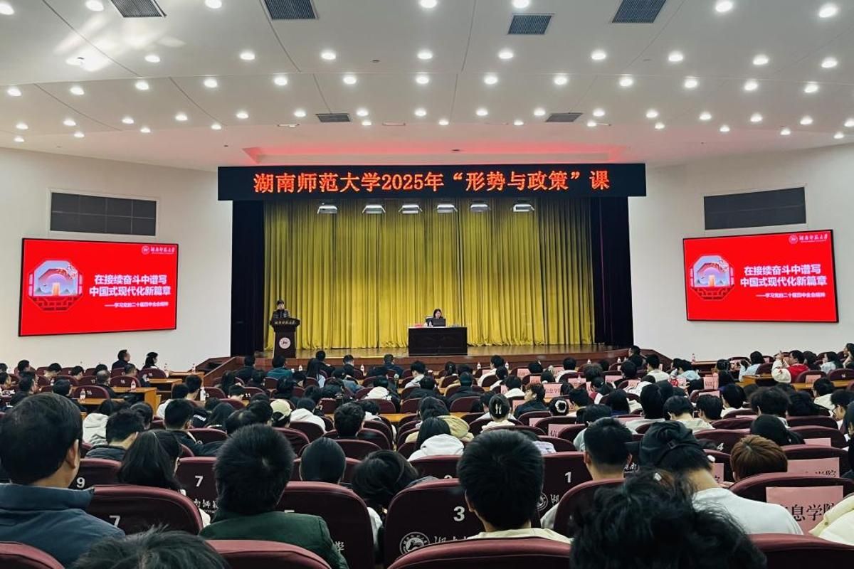 (通讯员 周逸 记者 马铁泉 肖漪 刘思婷)11 月 27 日下午,省纪委省监委驻湖南师范大学纪检监察组组长、校纪委书记姚春梅在我校国际学术报告厅为物理与电子科学学院、信息科学与工程学院师生讲授 2025年“形势与政策”课暨开展教职工政治理论学习,专题宣讲党的二十届四中全会精神。报告会由物理与电子科学学院党委书记罗嵘主持。
