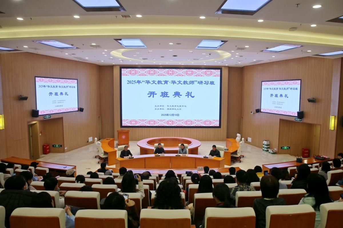 (记者 黄依依 龚怡 通讯员 陈奕静)12月18日上午,由华文教育发展中心主办、我校承办的2025年“华文教育·华文教师”研习班在图书馆报告厅举行开班仪式。湖南省海外联谊会秘书长雷五星,省政府侨办侨务处处长潘卫军、二级调研员龚玲出席仪式。仪式由我校国际汉语文化学院副院长沈敏主持。