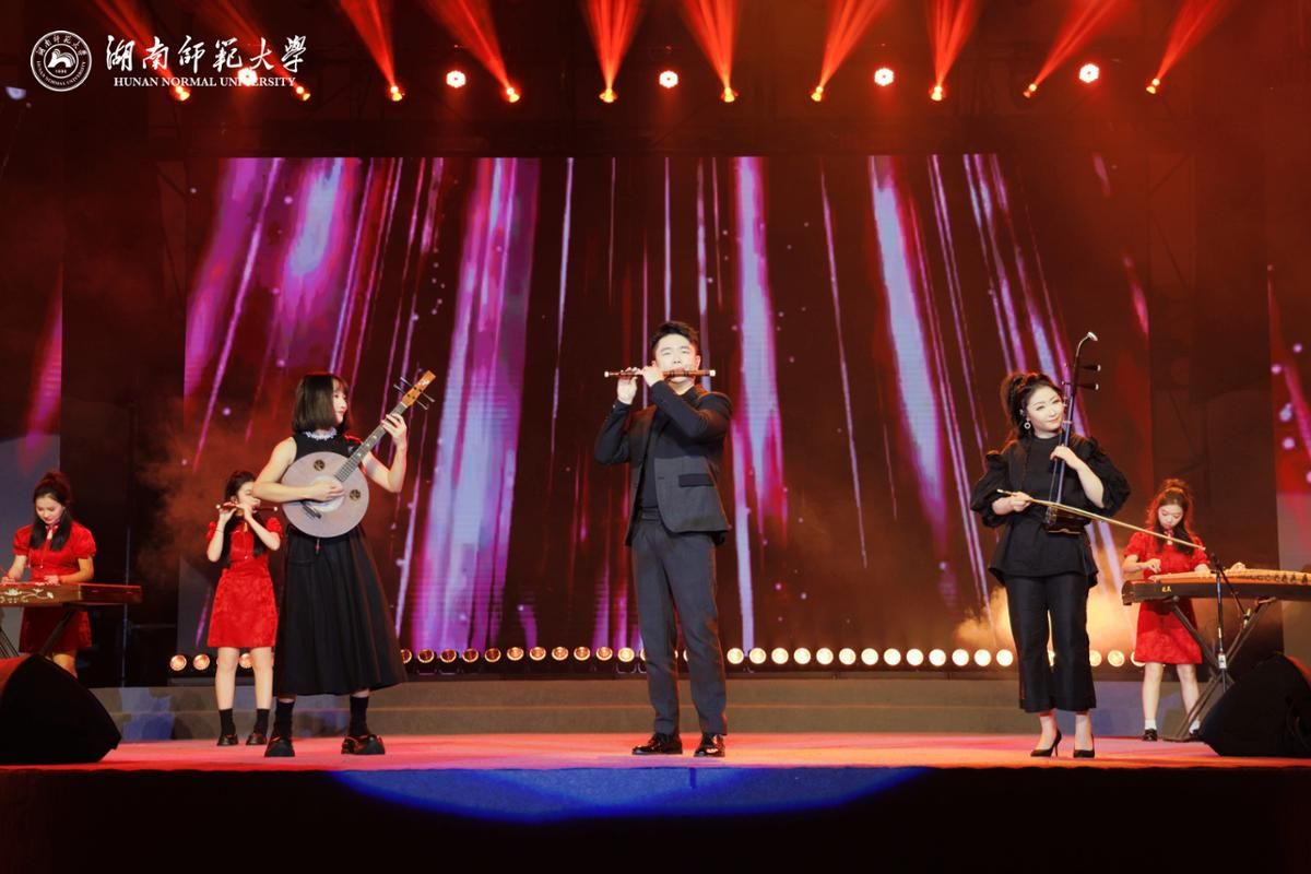 联欢会在附小芽苗舞蹈团带来的开场舞《智行少年》中拉开帷幕,小舞者们灵动的动作,搭配“萌狮助阵、科技同行”的创意瞬间点燃全场热情。时尚民乐《骐骥》中千年丝竹与现代乐队跨界碰撞,演奏者们以精湛的技艺展开穿越古今的音乐对话。古典舞《蘭叙》以兰为意,演员们舞出了幽谷自芳的从容与风雨不折的坚韧,在清雅乐声中尽显东方美学的深邃与曼妙。经典新编《浏阳河》在保留原曲深情内核的基础上注入现代编曲巧思,竹笛、钢琴与乐队伴奏相得益彰,让这首深植湖湘儿女血脉的旋律荡起新时代的涟漪。服饰秀《潇湘瓷韵》以校博物馆馆藏长沙窑文物为魂,将瓷的温润、服饰的灵动与光影的璀璨融为一体,重现千年窑火淬炼的匠心。歌曲《天地龙鳞》勾勒了“龙的传人”在新时代破浪前行的铿锵姿态,让中华文明底蕴与龙鳞象征的民族风骨交相辉映。由刘仲华校长和全体校领导班子成员一同参与的、60多位教授带来的合唱《明天会更好》,真挚歌声传递对学子、对家国的恒久期盼,温暖和声中满含对未来的美好憧憬。交响乐作品《采茶调》让观众随着音符走入潇湘的雾霭春色,感受东方田园诗意的交响画卷。《玛依拉变奏曲》灵动旋律与丰富变奏展现出哈萨克族姑娘的聪慧与对生活的热爱。《查尔达什舞曲》展现琴弓之下既有月光独语的柔情,又有火焰旋转的炽烈。著名歌唱家、音乐学院石倚洁教授接连献上三首佳作,一首《是你一直想着我》以饱满深情抒发了革命老区人民对党的感恩与对时代的致敬,在《我的太阳》这首意大利的永恒赞歌中传递爱与希望,歌剧《茶花女》经典选段《饮酒歌》,则以欢快的旋律、热烈的和声点燃全场,联欢会在欢腾氛围中圆满落幕。