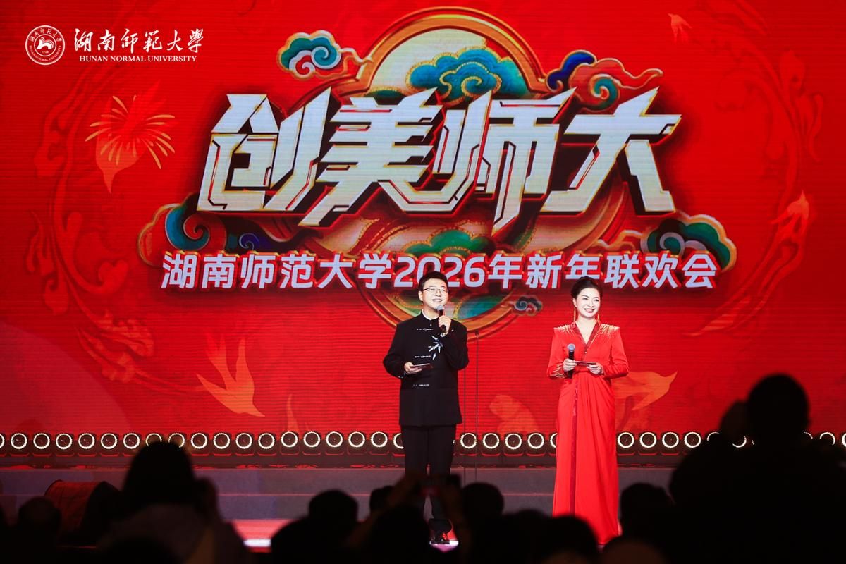 (记者 马铁泉 龚怡)12月27日下午,我校2026年新年联欢会在江湾体育馆举行。省人大常委会原副主任、省教育基金会理事长王柯敏,省妇联党组书记、主席杨兰英,省科协党组书记、常务副主席王瑰曙,省教育工会主席邓曼,省人力资源和社会保障厅副厅长李日新,省公共资源交易中心副主任刘定文,省林业局副局长胡峰,湖南农业大学原党委书记陈弘,我校原校长刘湘溶,原党委书记、欧洲科学院院士蒋洪新,湖南工商大学党委书记廖志坤,衡阳师范学院党委书记刘子兰,长沙工业学院党委副书记杨念,省教育工会副主席朱冠星,湘江新区相关街道办事处负责人,校友企业负责人,我校全体在家校领导,老领导、老同志代表,区级以上党代表、人大代表、政协委员、省政府参事和党外代表人士,相关职能部门、附属单位负责人及师生代表3000余人共同观看了联欢会。
