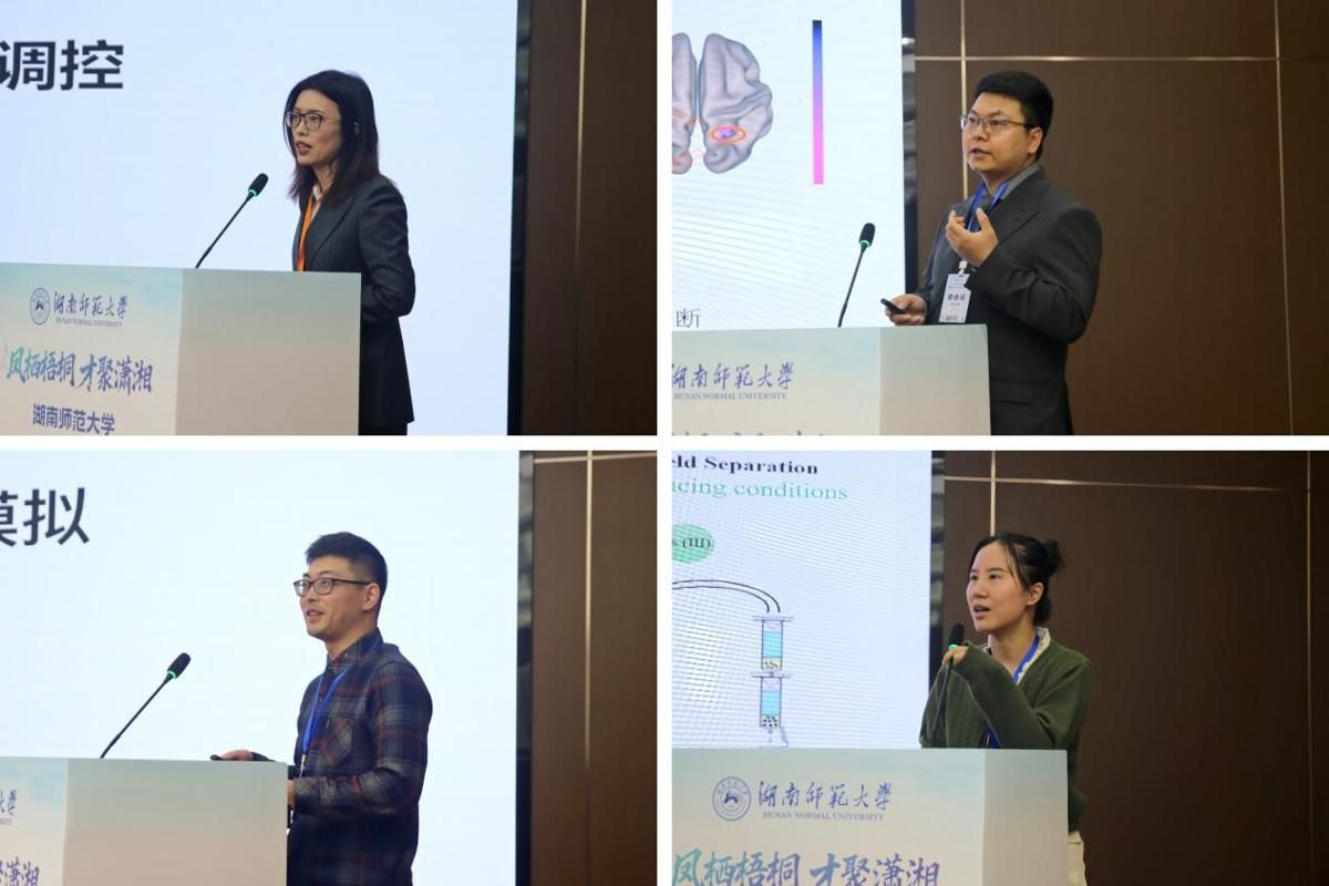 我校物理与电子科学学院“潇湘学者”特聘教授翟亚新结合自身科研工作和成长经历作主题汇报,格罗宁根大学博士刘亚东、香港科技大学博士李康乐、香港城市大学博士陶丹阳分享了各自的研究成果。