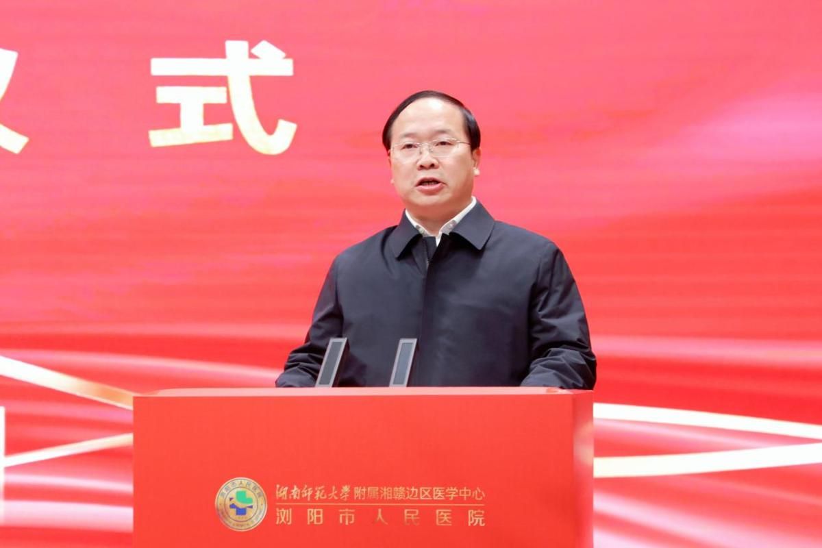 刘仲华表示,湖南师范大学与浏阳市联系紧密、合作深入、成果丰硕。此次校地携手共同打造湘赣边区医学中心,是助力区域医疗卫生事业高质量发展的“强引擎”、推动学校医学教育跨越式发展的“新平台”、打造校地合作共赢典范的“新模式”,将实现高校与地方发展同频共振、互利共赢。学校将全力支持医院的学科建设和科学研究,推动医教研协同发展,将湘赣边区医学中心建设成为集医疗、教学、科研、预防为一体的区域性医学高地,为守护湘赣边区域人民群众生命健康作出积极贡献。