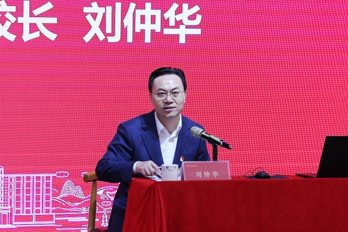 校党委副书记、校长刘仲华主持理论学习研讨会。中共湖南省委党校(湖南行政学院)秦勃教授以《习近平总书记关于树立和践行正确政绩观的重要论述》为题作专题辅导报告,从重大意义、丰富内容、实践要求等三个方面,对树立和践行正确政绩观作了全面阐释,深刻解答了“政绩为谁而树、树什么样的政绩、靠什么树政绩”的根本问题。