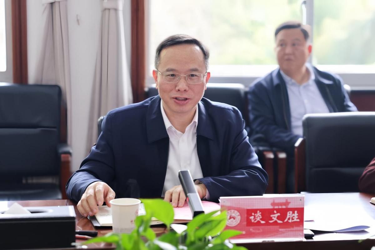 刘仲华向谈文胜一行的到来表示热烈欢迎,并介绍了我校的办学历史、学科建设和人才培养等情况。他表示,湖南省地质院的业务领域与我校的学科专业布局高度契合,地质院的实践优势也与我校的教育科研互为补充,希望校院双方以此次调研为契机,在产学研用等方面开展深度合作,打造科教融合样板,携手为湖南省社会经济发展作出更大贡献。