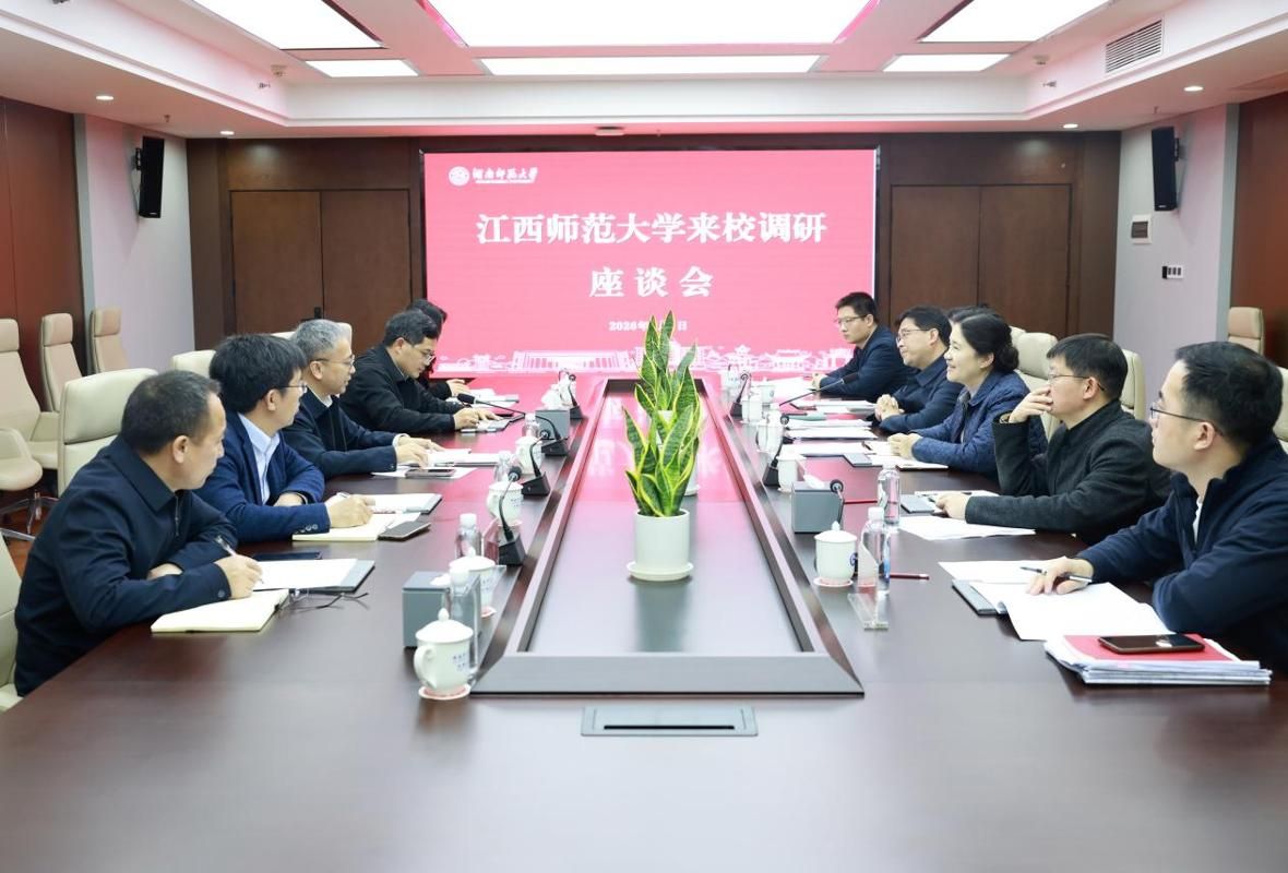 (记者 李采薇 马雨琪)4月1日上午,江西师范大学党委常委、副校长周利生一行来校调研交流,我校党委副书记段巍出席座谈会。发展规划与学科建设处处长孙岳兵主持会议。