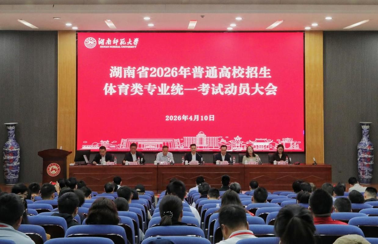 (通讯员 蒋晓晨 段依可)4月10日,湖南省2026年普通高校招生体育类专业统一考试动员大会在我校体育学院举行。省教育考试院党委书记曹文才,党委副书记、纪委书记刘海杨,副院长李瑛,我校校长、中国工程院院士刘仲华,省纪委监委驻湖南师范大学纪检监察组组长、校纪委书记徐桂林出席会议。省教育考试院相关处室、我校相关职能部门负责人,全体督考、巡考、考官及考务工作人员参会。会议由我校招生与就业指导处处长田野主持。