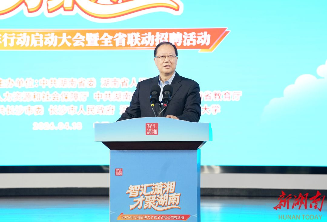 湖南日报4月18日讯(全媒体记者 刘燕娟 孙敏坚)18日,“智汇潇湘 才聚湖南”2026年行动启动大会暨全省联动招聘活动在湖南大学举行。省委书记沈晓明出席并宣布行动启动,省委副书记、省长毛伟明讲话。会后,沈晓明、毛伟明等一行在湖南师范大学招聘活动现场巡展。