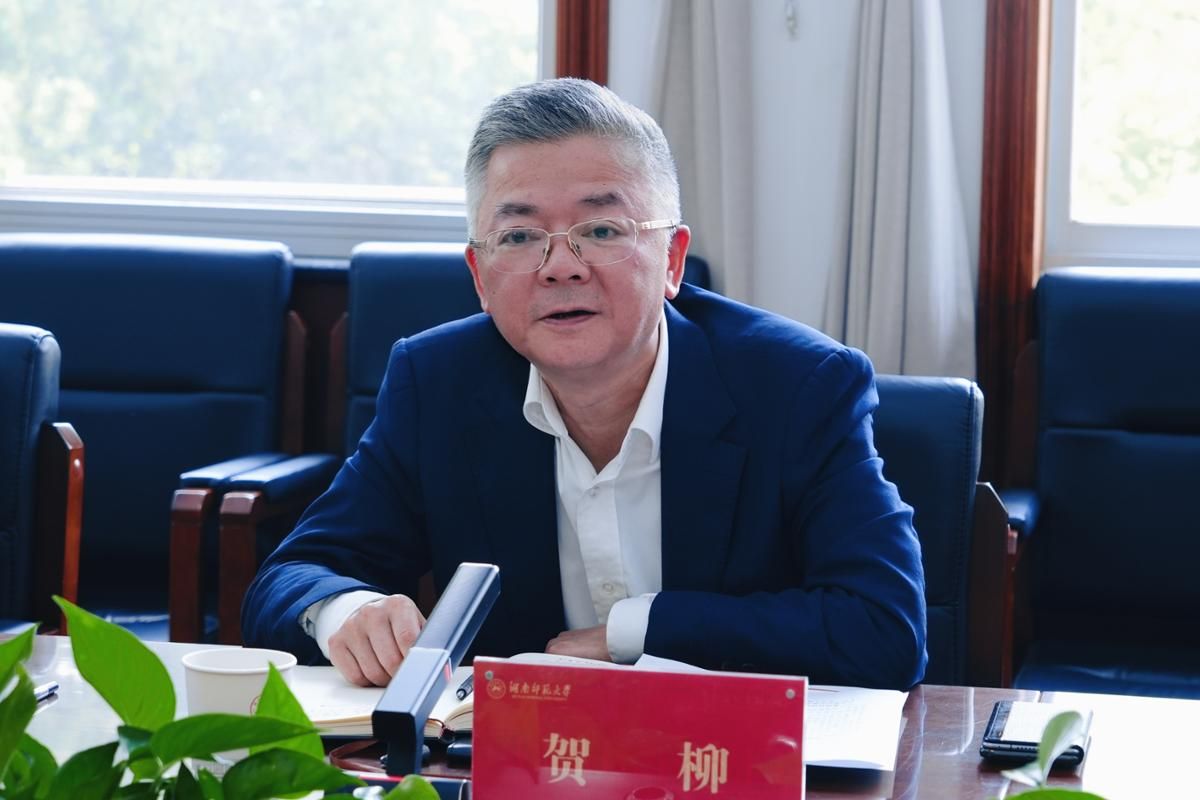 刘仲华对贺柳一行到访表示热烈欢迎,并介绍了学校学科建设、人才培养等方面的基本情况。他表示,作为省属重点师范院校,我校始终致力于高素质师资人才的培养,同时在学科建设、人才引育和创新创业方面持续发力,学校在科技成果转化、大学生创新创业等方面成效明显,新校区建设正加快推进。当前,学校深入贯彻党的二十届四中全会精神,坚持需求牵引,推动创新链、产业链、资金链、人才链“四链”深度融合;下一步,学校将持续深化校企合作,打通科技成果向现实生产力转化的“最后一公里”,推动更多优质科研成果落地转化。