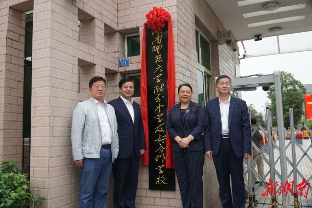 湖南日报·新湖南客户端5月6日讯(记者 李孟河 通讯员 向丽 陈曦)今天下午,湖南师范大学附属中学与湘西土家族苗族自治州民族中学缔结“友好合作学校”签约揭牌仪式,在吉首举行。湘西州政府副州长吴凌频,湖南师大附中校长谢永红,湖南师大附中党委书记黄月初,湘西州教体局党组书记、局长田勇,湘西州民族中学党委书记郑英滨、校长彭学军出席仪式。