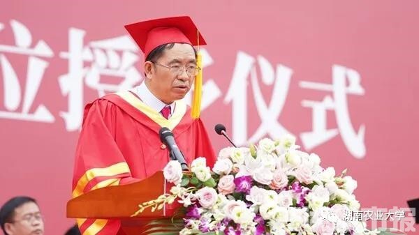 中国工程院院士、湖南农业大学校长邹学校在讲话中表示,当下是中华民族伟大复兴的时代,是乡村振兴主题鲜明的时代,是有志青年中流击水的时代。我们广大学子要紧紧抓住大有可为的历史机遇期,从容应对各种风险挑战。他提出了三点嘱托,一要修身立德。面对纷繁复杂的局面,要坚守内心的宁静,走好人生的每一步。二要心怀梦想。身逢盛世,当不负盛世,将国家需要作为奋斗方向,将人民富足视为守望追求。三要博采众长。带着发现的眼睛,抱着谦卑的态度,学习他人的优点,做到行稳致远。