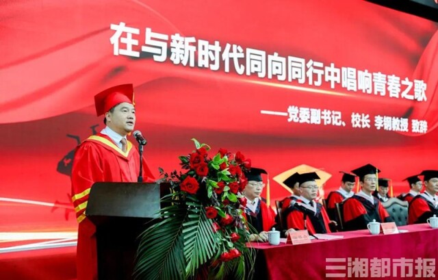 同学们虽然所学的专业不同,即将奔赴的工作岗位也不同,但湘科院四年来赋予大家远大的理想,实干的品行和创新的勇气是相同的。希望大家带着独特的湘科院气质,走出校园、走入社会、走向未来,以越是艰险越向前的刚健勇毅,书写无愧于时代的青春之歌。