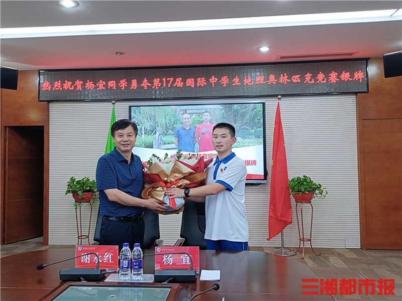 “杨宜取得的这块银牌实现了湖南学生在国际中学生地理奥林匹克竞赛项目上‘0’的突破,非常不容易。”8月16日,在湖南师范大学附属中学,记者见到了该校学生杨宜和他的教练向超。就在8月15日晚,从土耳其伊斯坦布尔传来喜讯,第17届国际中学生地理奥林匹克竞赛(IGEO)中,杨宜获得了IGEO银牌,成为了湖南学生在IGEO夺得的第一枚奖牌,是一次历史性的突破。