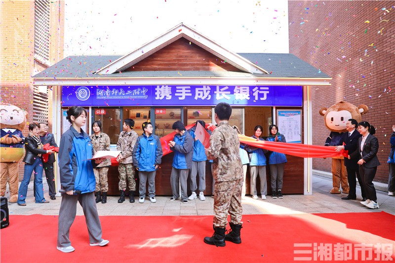 三湘都市报12月21日讯(通讯员 钱佳 全媒体记者 杨斯涵 黄京) 听说湖南师大第二附属中学校园里开业了一家特殊的银行?这家特殊的银行流通的不是人民币,而是“成长币”,银行的柜员不是老师,而都是学生。近日,湖南师大二附中携手成长银行正式开业,全校师生共同见证了这场特别的仪式。