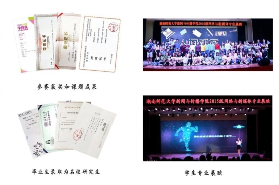 充分利用现代传媒技术实验室、“中国传播与现代化研究中心”“湖南省传媒发展研究基地”“湖南省社会舆情监测与网络舆情研究中心”、全国独家首创的“县级融媒体建设研究中心”等教研平台,健全新媒体专业动态调整机制,增设“网络舆情分析”“大数据技术”“数字设计艺术”“人工智能”等一批新兴课程,编著出版《新媒体数据分析与应用》《新媒体数据新闻》《网络舆情教程》等一批“新文科”交叉融合典范教材,有力激发了专业发展内生动力。大力推进“新文科”建设,引领新媒体专业创新发展、质量发展、内涵发展。以“跨界”与“融通”作为网络与新媒体专业人才培养的核心理念,创造性实施“学科交叉、文理交融、情技糅合”的卓越新媒体人才培养模式。“多学科知识深度交叉融合,能够使我们的专业能力真正得到提升,这也支持了我专业能力和科研能力的增强”,被推免录取为清华大学研究生的2020届毕业生袁雨晴如是说。2016届毕业生刘叶子分别于2016年、2019年考入中国传媒大学、四川大学硕士研究生和博士研究生,硕士和博士阶段均获国家奖学金,她深有感触地说:“本科课程学习和多学科交叉融合知识储备对于学术科研道路至关重要,尤其是对新媒体数据分析技术的掌握在我科研中发挥了很大作用”。