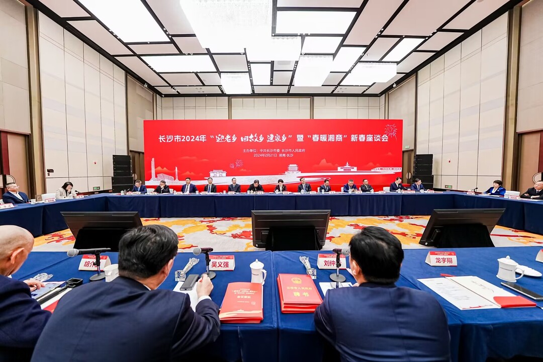 2月21日上午,长沙市2024年“迎老乡 回故乡 建家乡”暨“春暖湘商”新春座谈会举行。