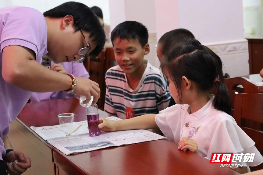 红网时刻新闻7月18日讯(通讯员 李岚彪 周倩妮 曾胡杨 记者 张兴莎)近日,湖南师范大学“麓山青年”社会实践团(以下简称实践团)为株洲攸县墙背村的中小学生们上了一堂趣味化学实验课,第一次让孩子们走进了神奇的化学世界。