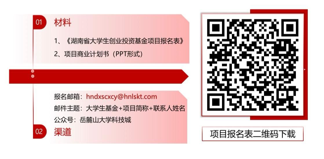“湖南省大学生创业投资基金将通过广泛的项目征集、客观的路演评审、全面的尽职调查、科学的投资决策以及严格的监督考核,原则上每3个月完成一批项目投资。”张帆介绍,项目筛选全程“公平、公正、公开”,将《湖南省大学生创业投资基金项目报名表》、项目商业计划书(PPT形式)发送至基金报名邮箱(hndxscxcy@hnlskt.com)即可申报。