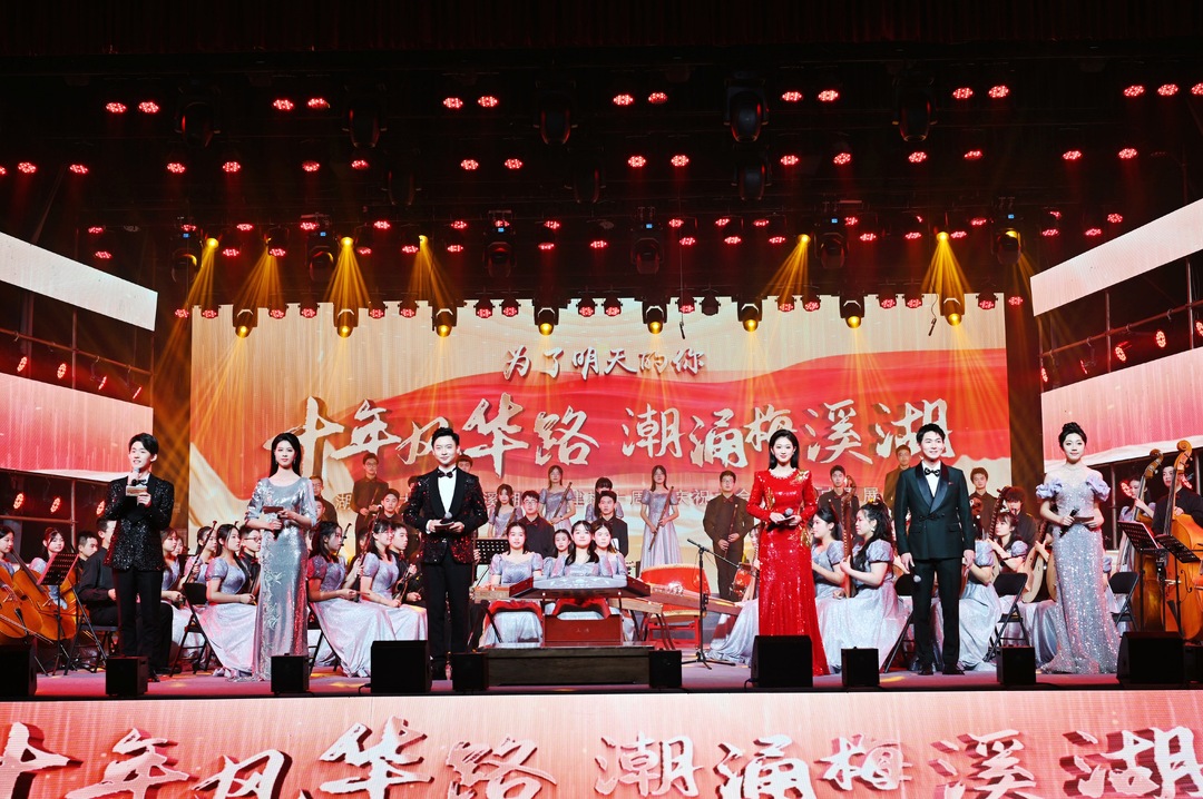学校礼堂内,文艺盛会精彩上演。歌曲《有我》悠扬唱响,正式拉开了一场凝聚岁月光辉与未来憧憬的华丽序章。老师们以灵动舞姿演绎《山河锦绣》,仿若熠熠华光,将现场氛围推向了高潮。“恰同学少年,风华正茂”……最后,文艺盛会在歌伴舞《沁园春·长沙》中圆满落下帷幕。