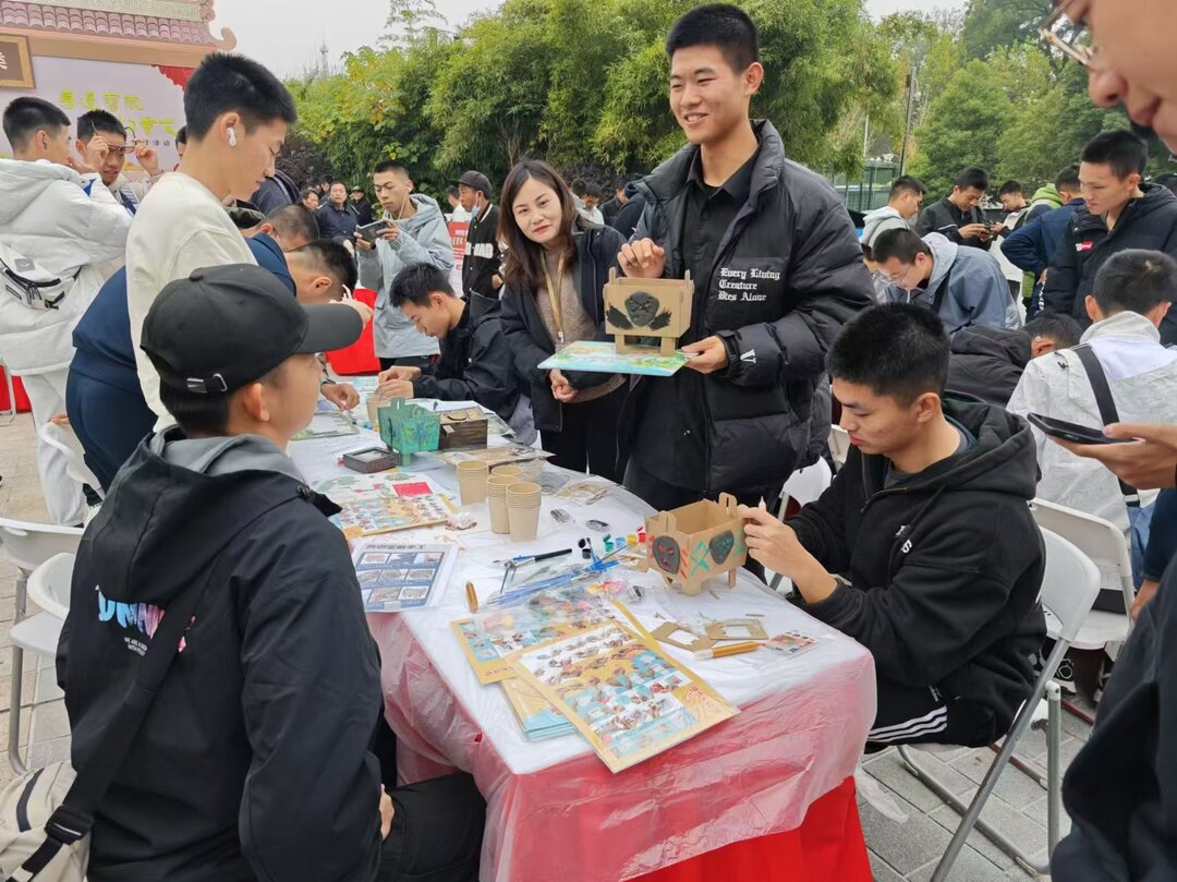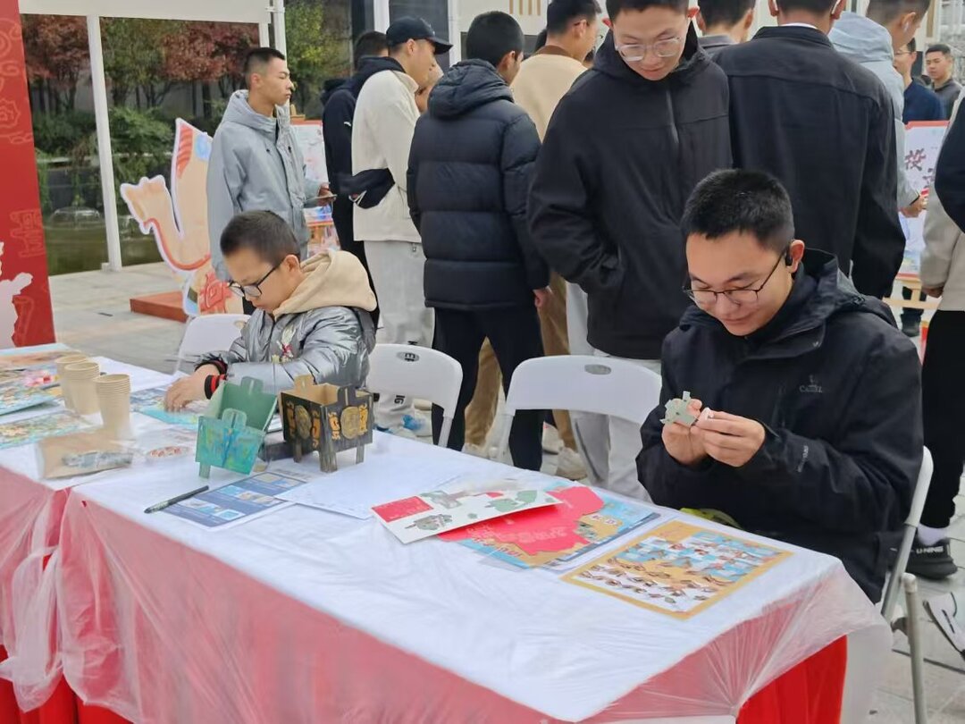 另一边,“汉风新礼”活动专区,以汉文化体验为核心,居民们在礼仪老师的带领下穿汉服、习汉字、行汉礼”,沉浸式感受汉文化的魅力。“这湘有礼”文创产品展区展示了湖南师范大学美术学院带来的艺术设计学系文创产业研究课程成果,同学们以湖南博物院文物为灵感,创作出系列各具特色的文创产品,吸引了众多居民驻足观赏。“铜趣乐园”IP互动游戏区更是深受“大朋友和小朋友”的喜爱,玩投壶、铜趣钓钓乐游戏,在现场做手工还原文物形态,拼拼图、领奖品,免费品尝画糖人、糖油粑粑等美食,玩得不亦乐乎。