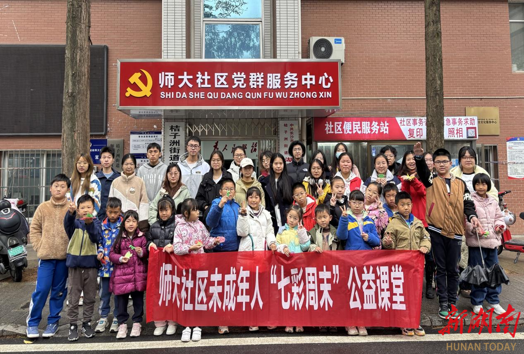 新湖南客户端12月9日讯(通讯员罗慧)为进一步加强社区未成年人思想道德建设,丰富辖区未成年人的课余生活,近日,湖南湘江新区桔子洲街道师大社区党总支与区校共建学院携手开展了未成年人“七彩周末公益课堂”,通过整合社区和学院的资源,策划一系列丰富多彩的活动,为未成年人提供一个学习、交流和成长的平台。