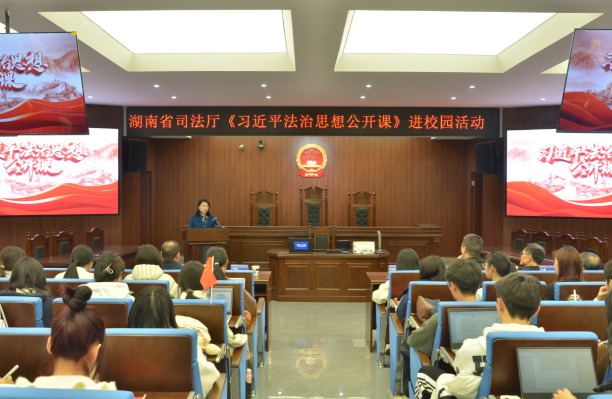 湖南普法网讯(记者 徐箐梓 通讯员 谢蛟)12月19日,由湖南省司法厅组织的《习近平法治思想公开课》进校园活动在湖南师范大学举行。湖南省司法厅普法与依法治理处、湖南师范大学法学院和有关部门负责同志,以及来自该校的200余名师生参与活动。