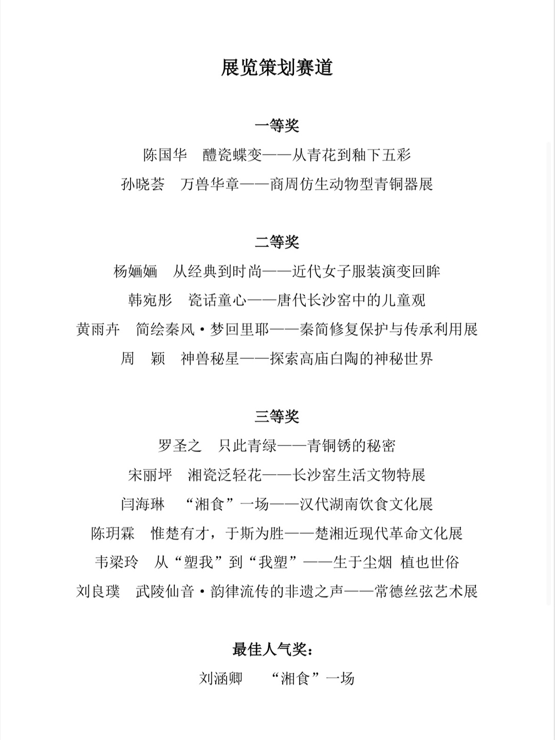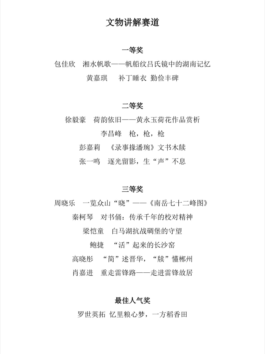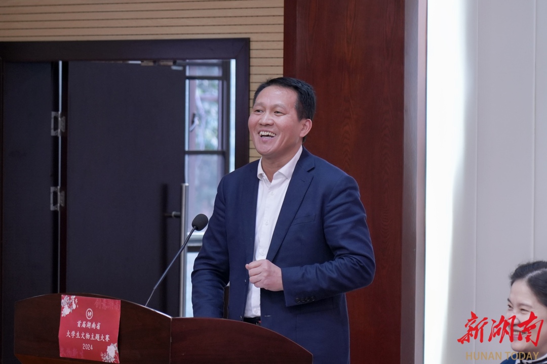 “希望各单位持续加大对文物保护与文化传承创新的支持力度,向同学们放开更多接触文物、研习技艺的实践基地。希望湖南师范大学继续深化校社协同,加强国际交流,让湖湘文物在世界舞台绽放光彩。希望同学们以此次大赛为起点,继续深耕文化沃土,成为文物保护的宣传者、文化传承的践行者。”湖南省委教育工委委员、湖南省教育厅党组成员余伟良说。