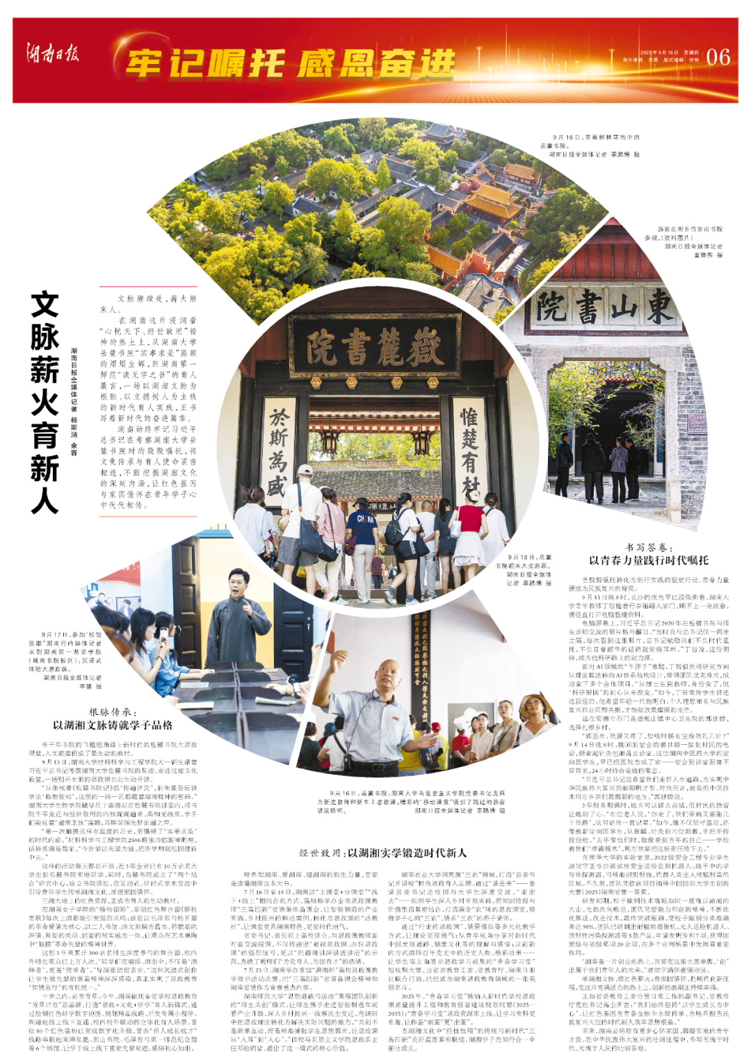 当湖湘文化中“经世致用”的传统与新时代“三高四新”美好蓝图紧密联结,湖湘学子在知行合一中茁壮成长。