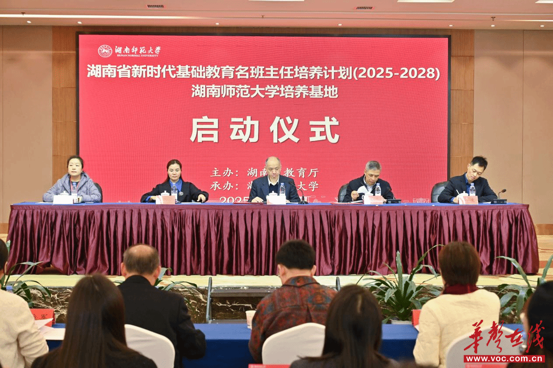 华声在线12月8日讯(通讯员 梁露珠)12 月 6 日上午,湖南省新时代基础教育名班主任培养计划(2025-2028)启动仪式在湖南师范大学培养基地举行,10 名高中学段名班主任与 100 名卓越班主任培养对象齐聚一堂,开启为期 10 天的专业研修之旅,为全省基础教育班主任队伍建设注入强劲动能。省教育厅教师工作与师范教育处处长崔书芳、湖南师范大学副校长杨震出席。