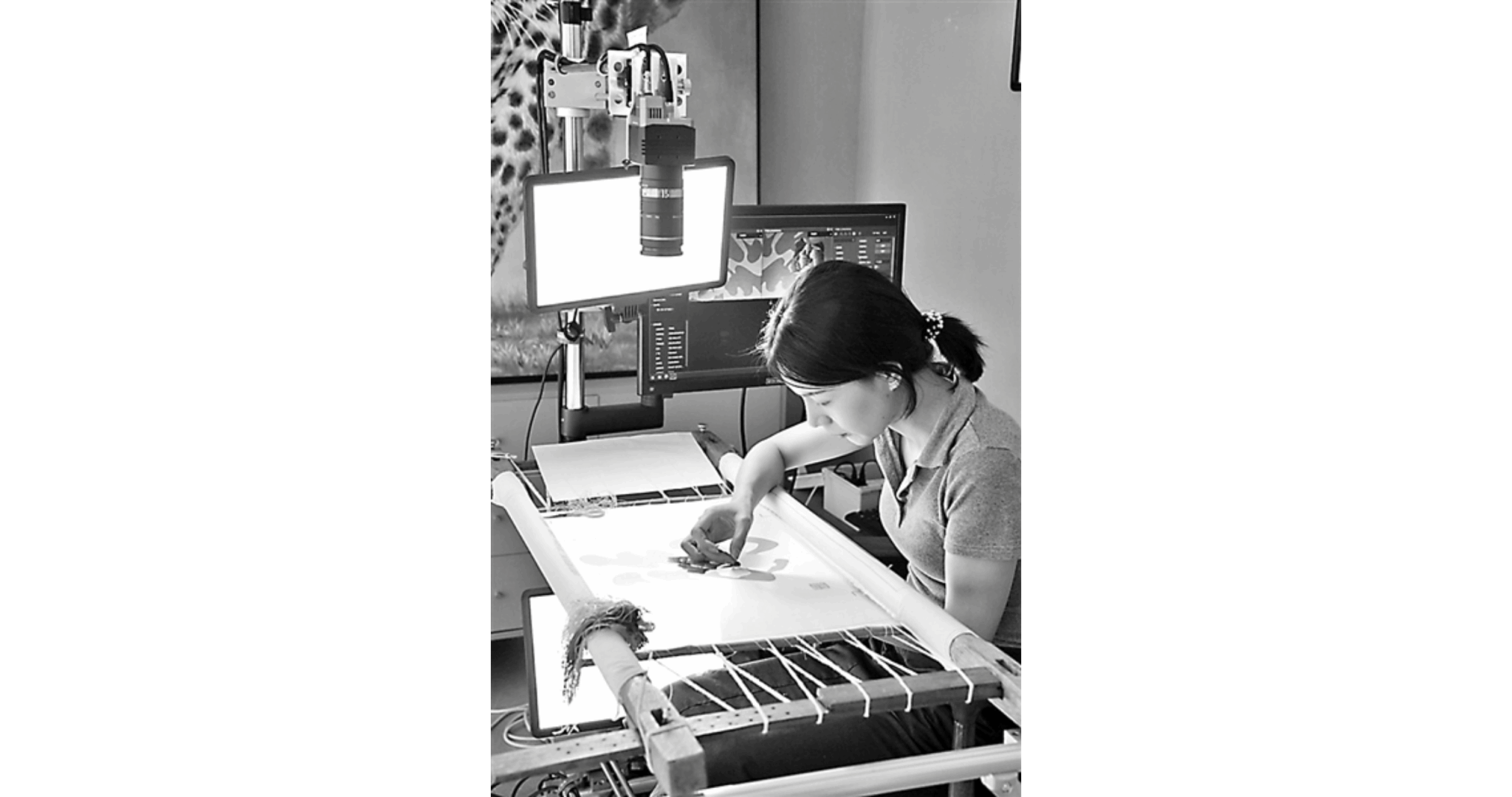 湖南师范大学全球首创湘绣大师针法原真采集系统实现了机器仿真刺绣量产。 学校供图