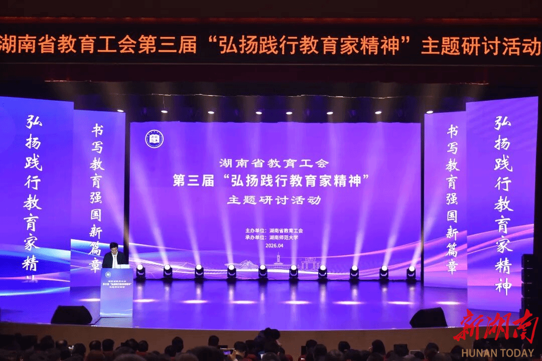 湖南日报4月24日讯(通讯员 卢伊笑 全媒体记者 杨斯涵)4月24日,由湖南省教育工会主办、湖南师范大学承办的第三届“弘扬践行教育家精神”主题研讨活动在湖南师范大学附属中学举行。全省近千名优秀教师代表、教育工会工作者齐聚一堂,通过主旨报告、主题分享、主题沙龙等形式,共同奏响湖湘教育家精神的动人乐章。