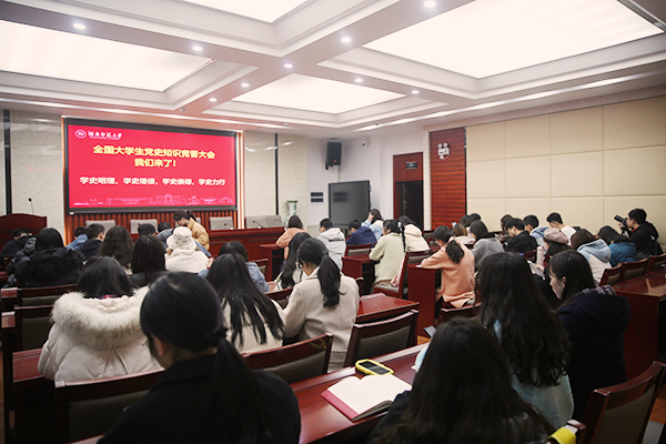 (记者 朱元福 雷珩 何思达)为深入学习贯彻习近平总书记在党史学习教育动员大会上的重要讲话精神,引导全校师生以昂扬姿态迎接中国共产党百年华诞,3月20日下午,我校组织学生参加了《全国大学生党史知识竞答会》“千校学生云答题”活动,来自公共管理学院、马克思主义学院、法学院、历史与文化学院、文学院、音乐学院、信息与工程学院等50余名学子参加了集中线上答题,持续掀起了党史学习教育热潮。