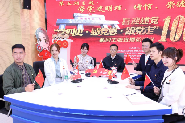 (通讯员 周思宁 刘诗圆 赵一奇 郭书畅)4月26日下午,湖南省高校网络思想政治中心联合我校党委组织部、宣传部、学生工作部(处),组织开展了“学四史·感党恩·跟党走”喜迎建党100周年网络直播宣讲微课堂。中央马克思主义理论研究和建设工程首席专家、湖南大学马克思主义学院名誉院长、中国文化软实力研究中心主任、博士生导师张国祚教授做客“星空”直播间,以“学党史明理、增信、崇德、力行”为主题进行直播宣讲。