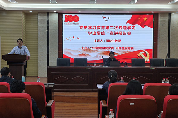 (通讯员 李江 赵芸凰 李婧源)4月29日下午,公共管理学院党委、研究生院党委召开党史学习教育第二次专题学习“学史增信”宣讲报告会。公共管理学院党委书记余望成主持报告会。