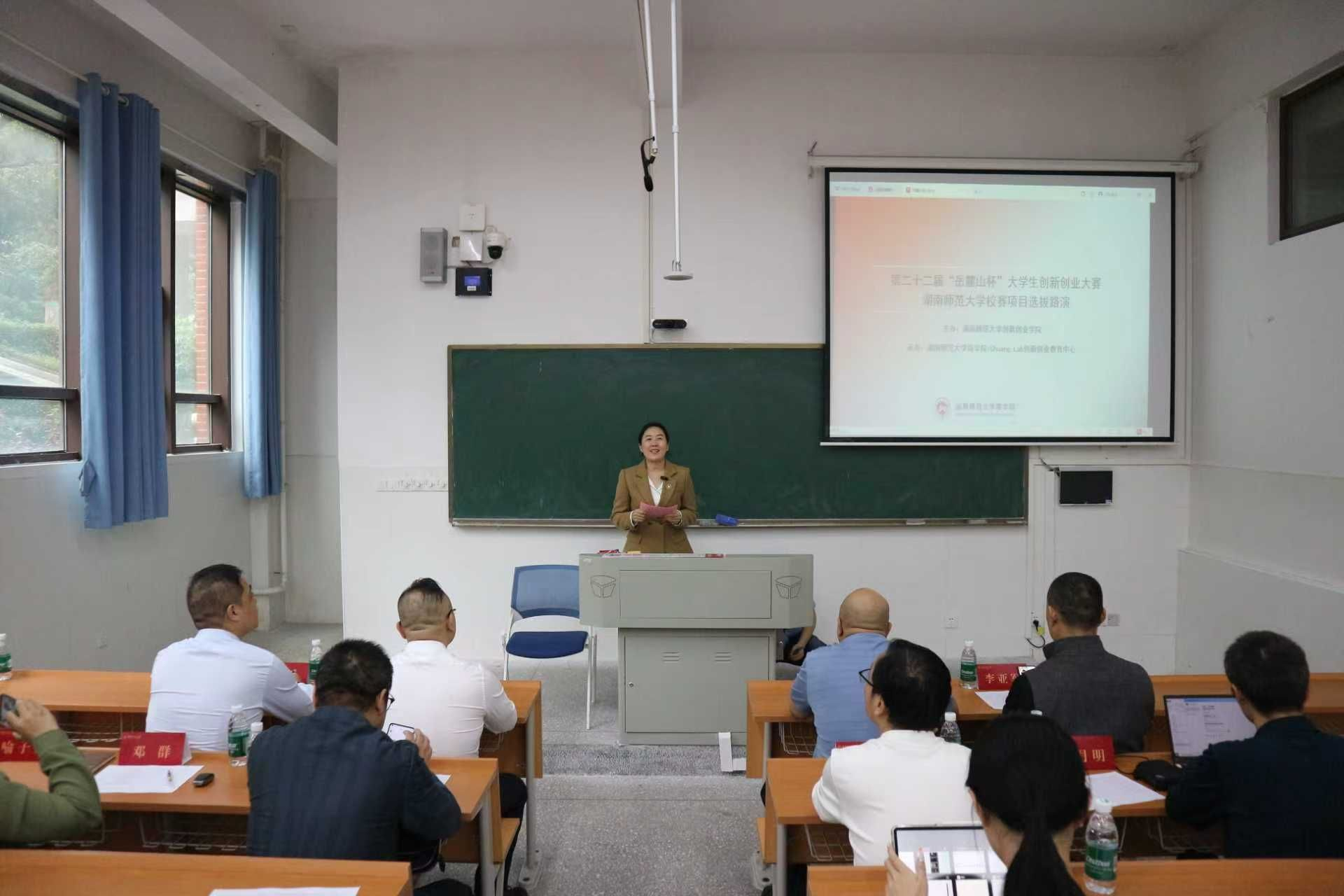 为积极响应党的二十大及二十届二中、三中全会精神号召,深入贯彻习近平总书记关于高校毕业生等青年就业创业工作的重要指示批示精神,以及省委、省政府关于支持大学生创业的部署要求,激发我校学生创新活力与创业热情,10月16日下午,长沙市第二十二届“岳麓山杯”大学生创新创业大赛湖南师范大学初赛在我校中和楼商学院113、114教室举行,此次比赛由湖南师范大学创新创业学院主办,湖南师范大学商学院iChuangLab创新创业教育中心承办。